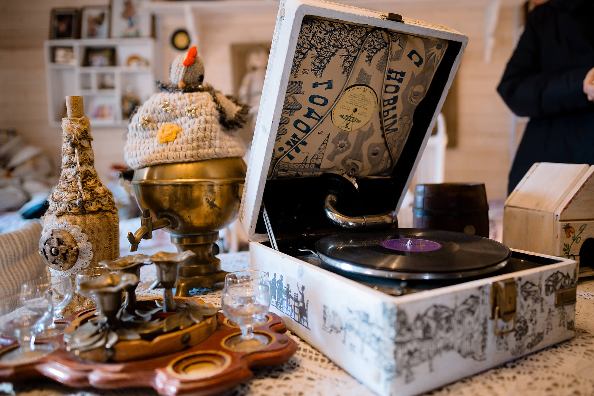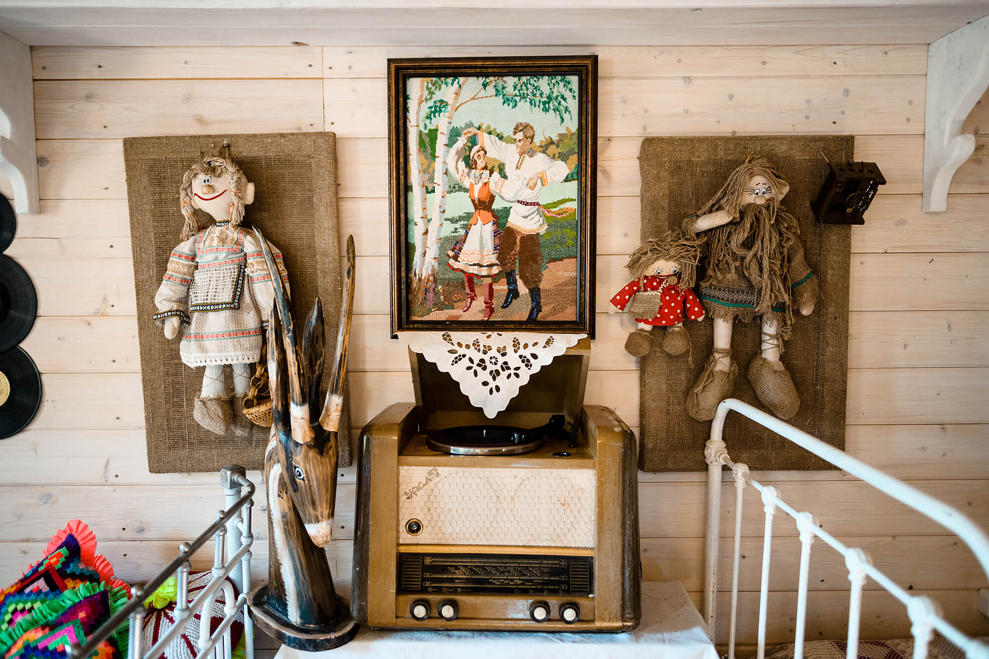 На досках (хрен, сухари, полендвица, сало), оладьи, настойка | |