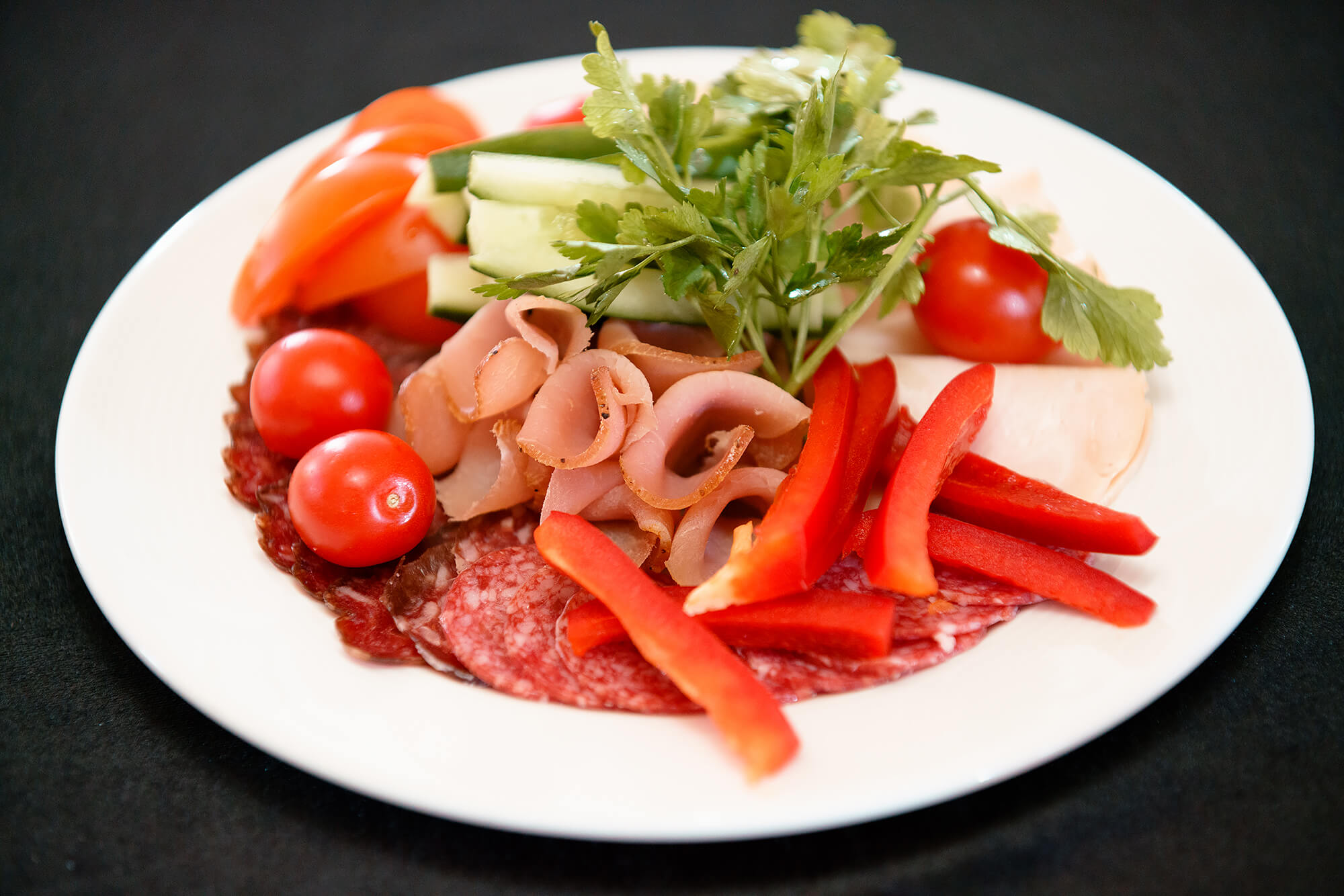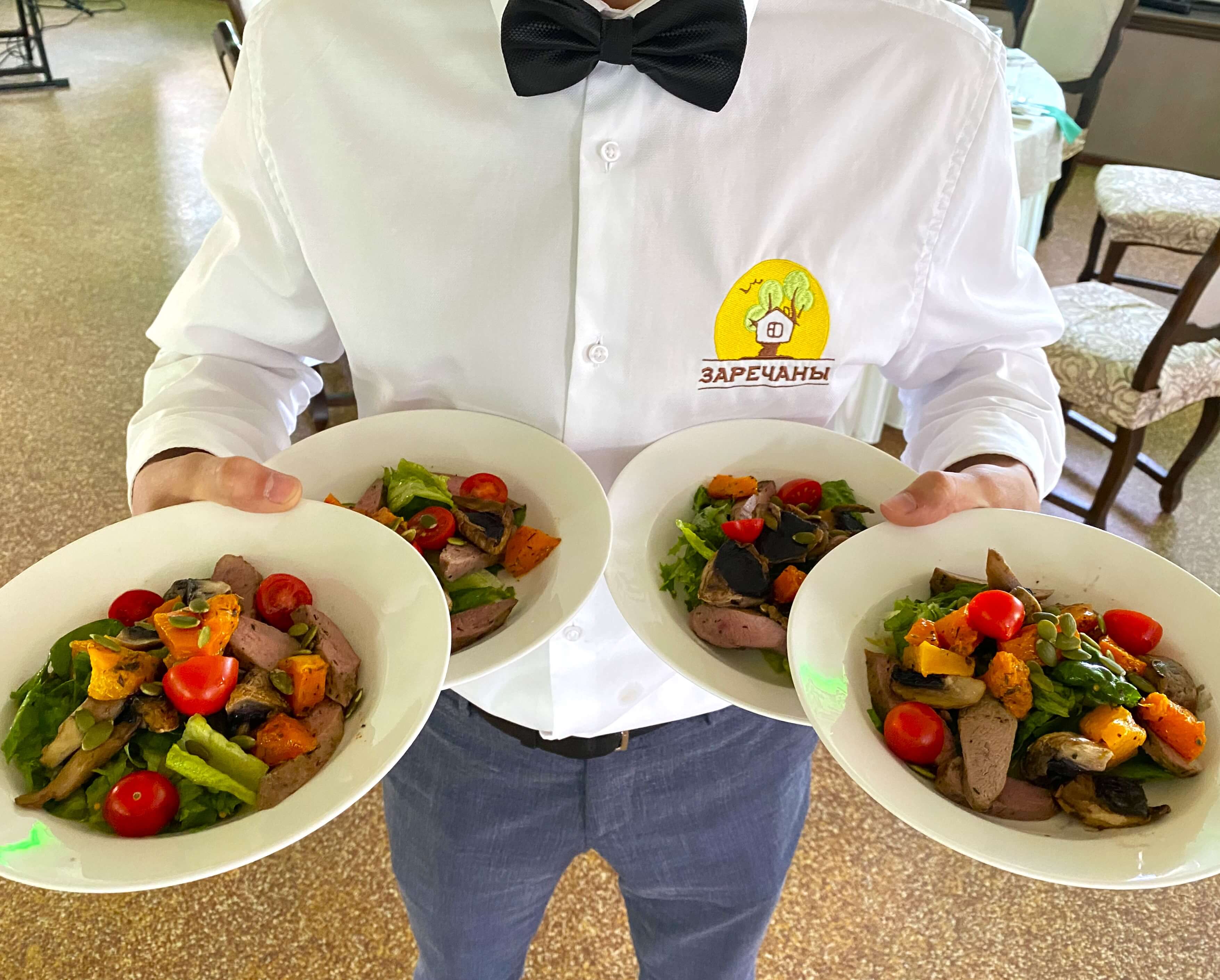 Первое, гарнир, мясное горячее, овощной салат, сервировка | |