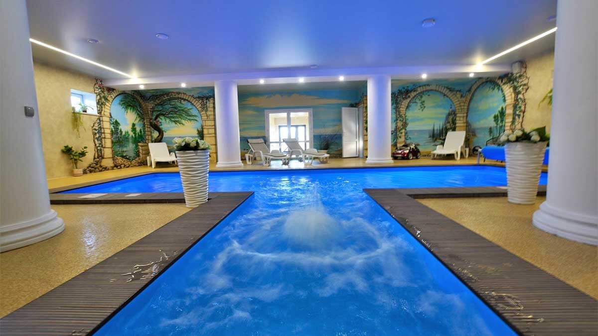 Теплый бассейн, массажный кабинет, полотенце, сауна, музыка | |