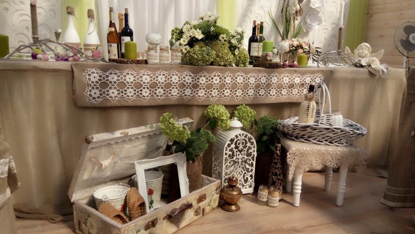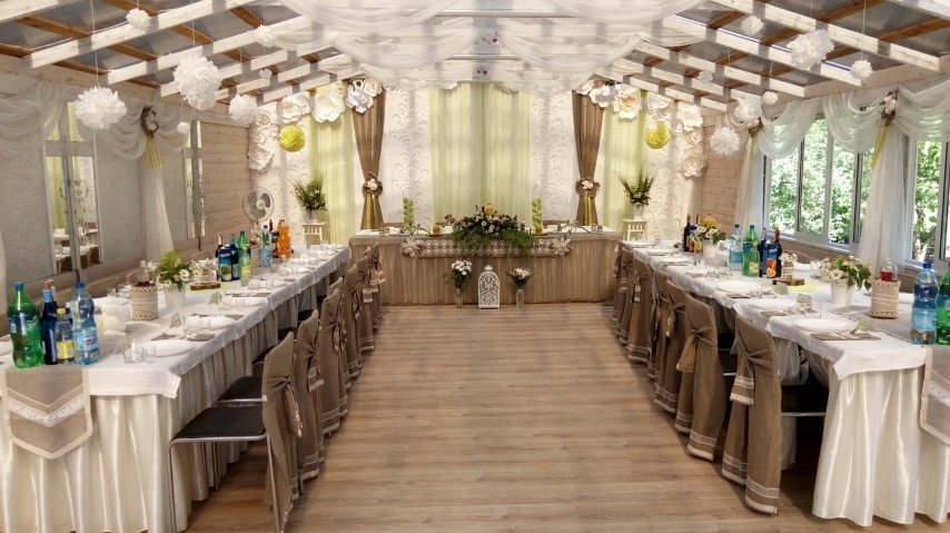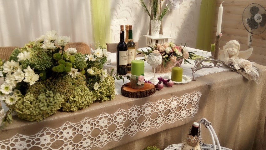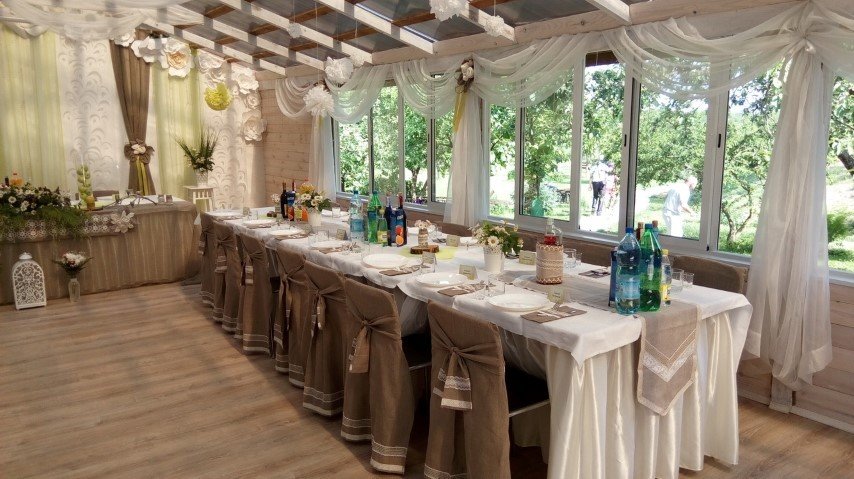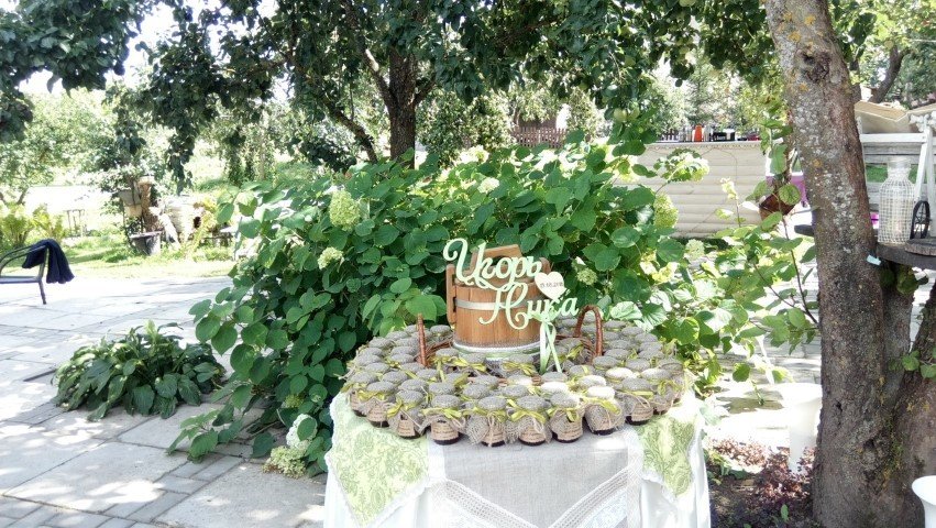 - Использование натуральных материалов в украшении зала и места регистрации на территории